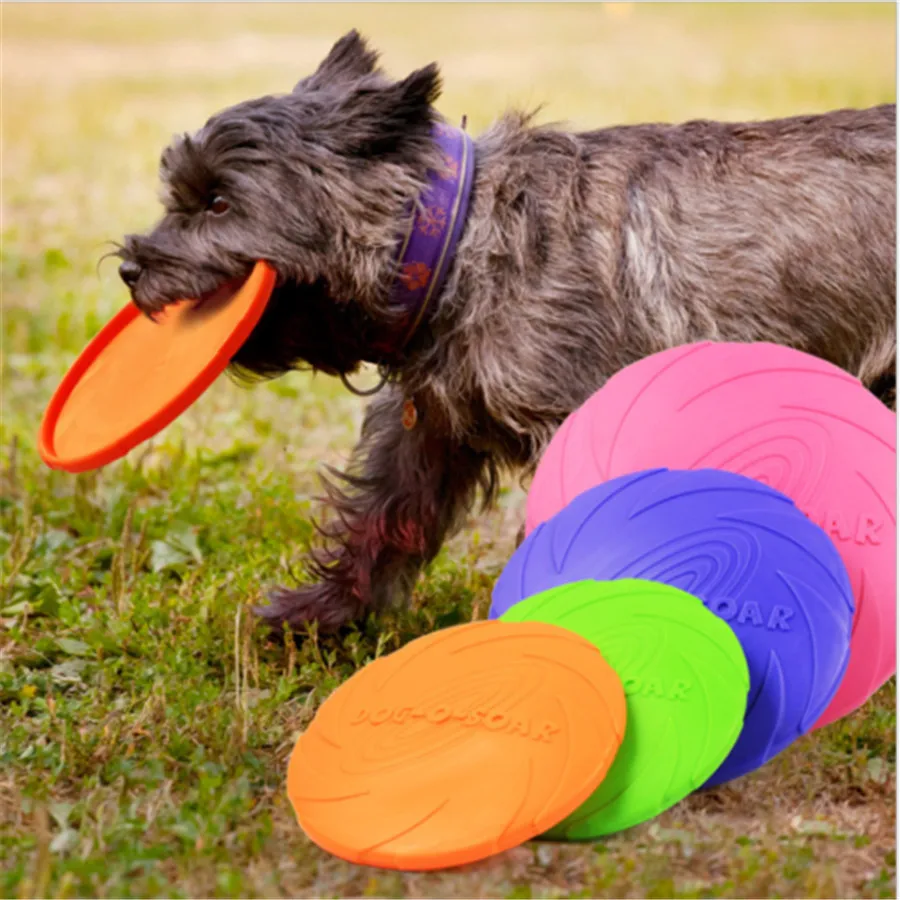 صور من 2019 الحيوانات الأليفة لعب جديد كبير الكلب سيليكون لينة تحلق أقراص ممارسة ترينينج جرو لعبة المطاط إحضار القرص الطائر Frisby 15 /18 سنتيمتر