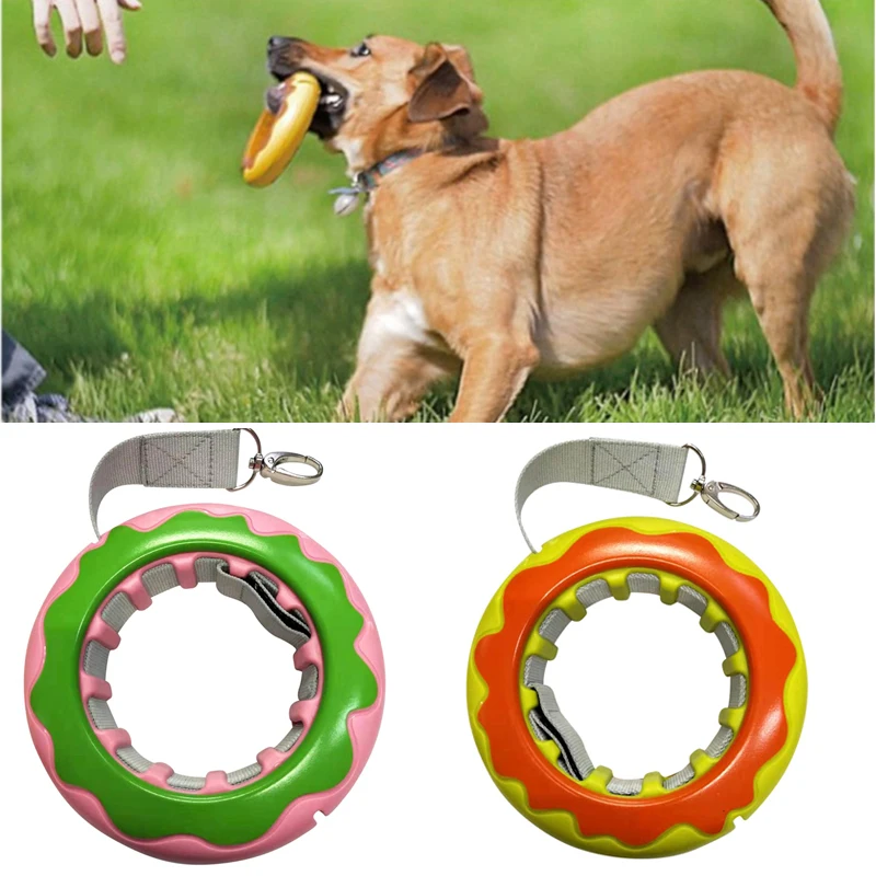 معرض ل دونات شكل الكلب قابل للسحب النايلون المقود واحدة/مزدوجة الجر حبل تحلق أقراص لعبة الحيوانات الأليفة التدريب حلقة الكلب لعبة تفاعلية